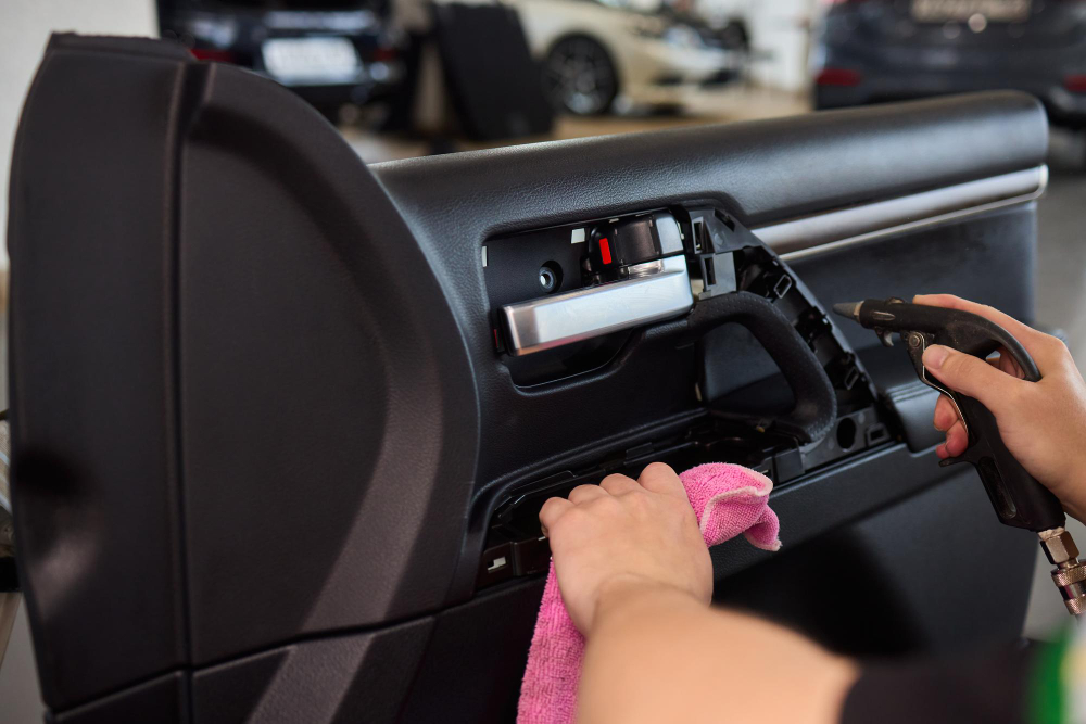 Servicio de acabado final del vehículo, cuidando detalles como marcos de puertas, rejillas y superficies interiores. Un toque final para que tu coche salga limpio, cuidado y listo para usar.
